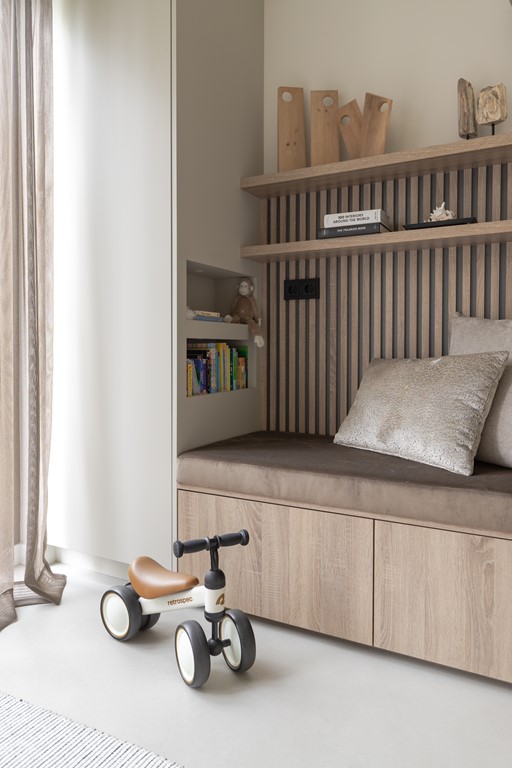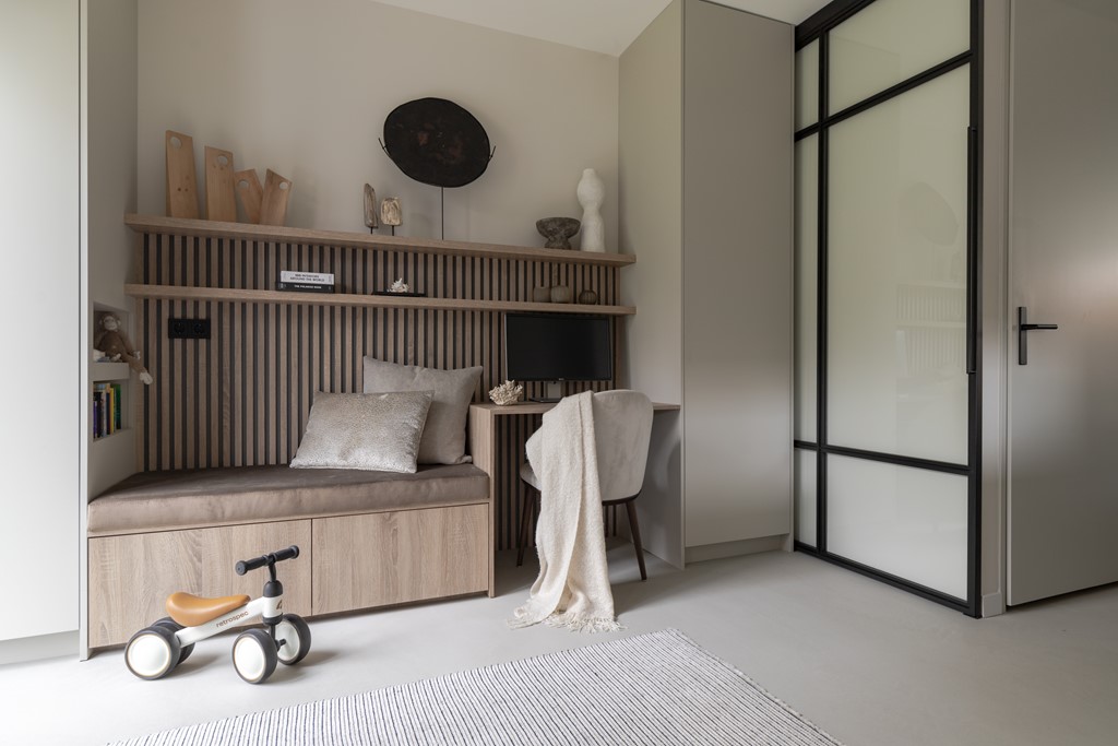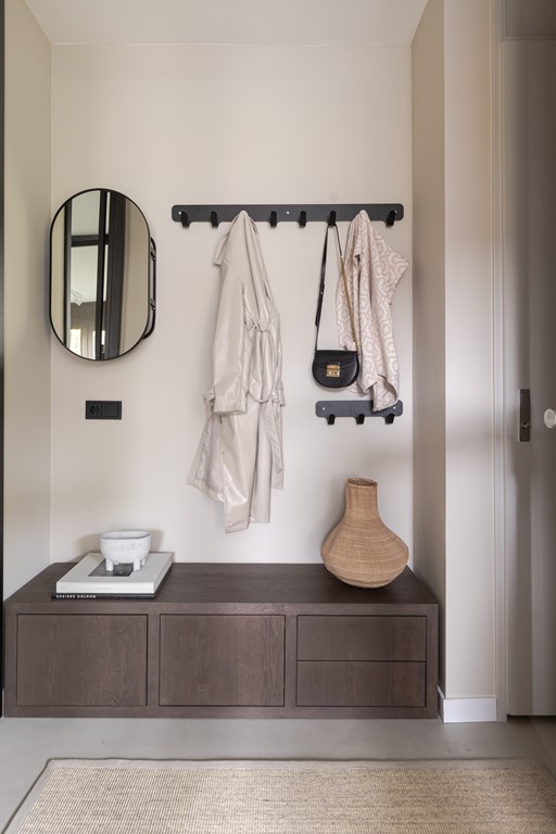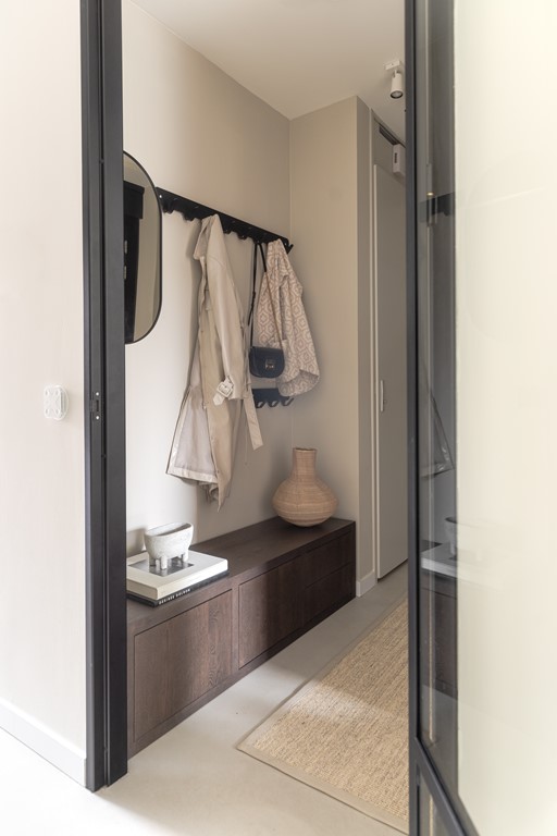 Bij binnenkomst in de ruime hal ervaart u direct de hoogwaardige afwerking. Hier vindt u onder andere het moderne toilet en toegang tot de royale woonkamer. Het voorste deel van de woonkamer leent zich uitstekend als speelkamer voor de kinderen of als rustige thuiswerkplek. Het achterste gedeelte is ingericht als leefruimte en biedt een warme en sfeervolle plek om te ontspannen.