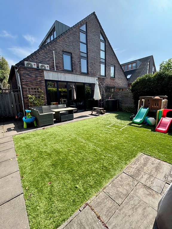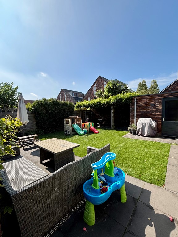 De woning beschikt over een eigen oprit met laadstation voor elektrische auto’s. Aan de achterzijde ligt een ruime, sfeervolle, kindvriendelijke tuin op het westen. Hier vindt u een fijne veranda waar u ’s avonds heerlijk kunt genieten van de avondzon. Verder is er een stenen berging aanwezig voor extra opslagruimte.