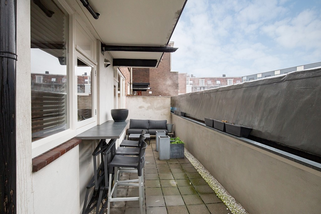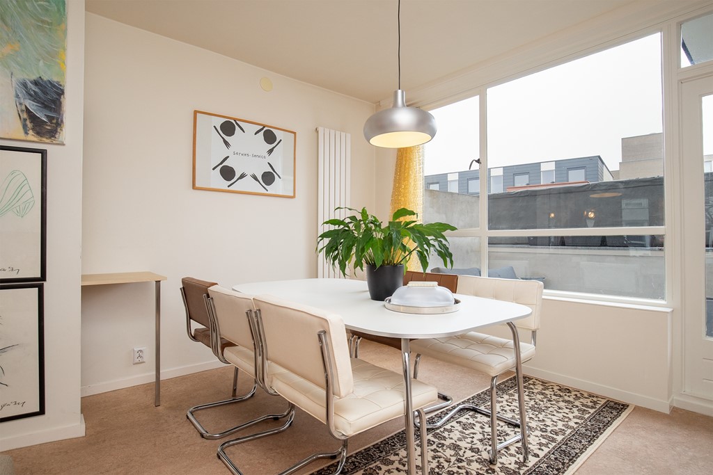 Vanuit de woonkamer stap je zo het ruime dakterras op – een heerlijke plek om te genieten van de zon of een gezellige avond met vrienden.