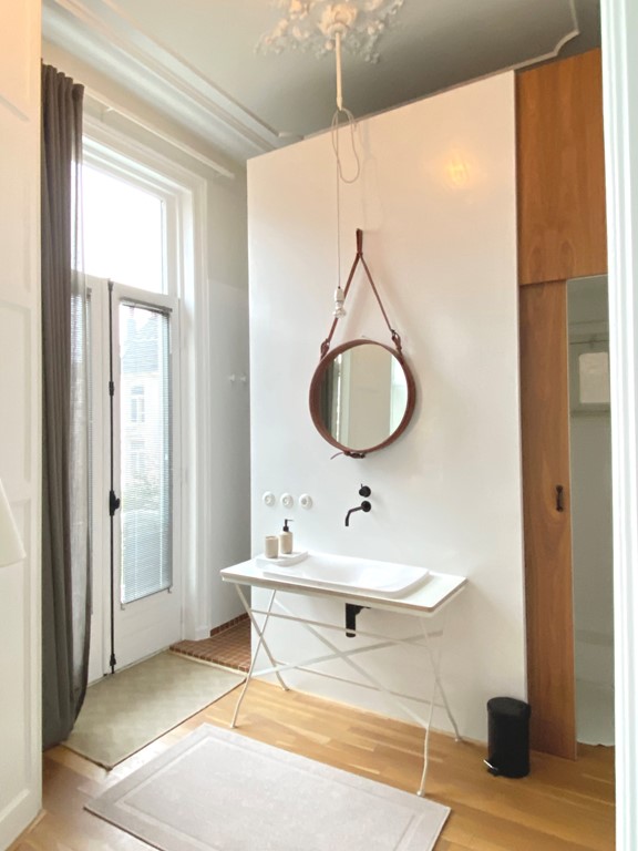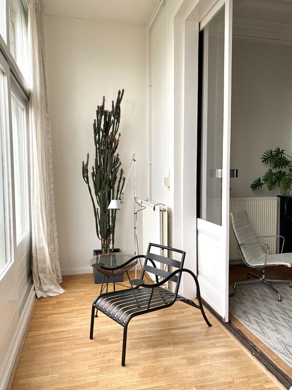 Het appartement beschikt over een ruim inpandig tuingericht balkon en een kleiner balkon aan de voorzijde. Het is compleet gemeubileerd met moderne en high-end vintage meubelen.