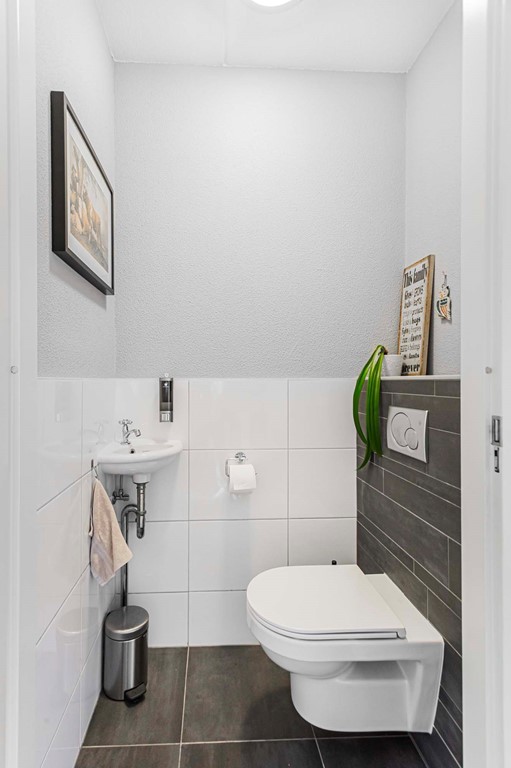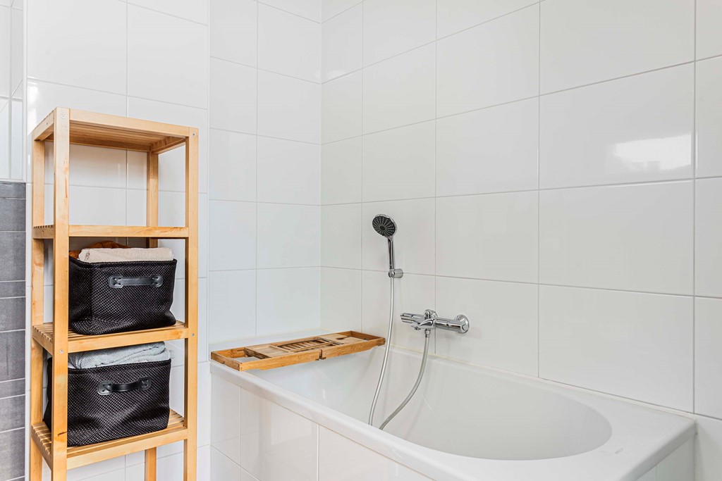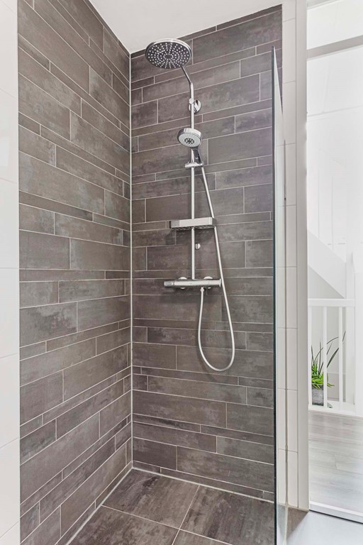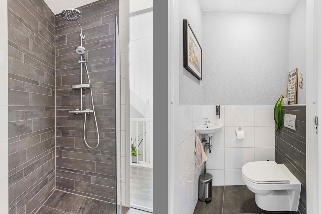 De eerste verdieping is bereikbaar via een afsluitbare trap en biedt drie ruime slaapkamers. De modern afgewerkte badkamer straalt luxe uit en is compleet uitgerust met een dubbele wastafel, toilet, inloopdouche en een royaal ligbad.