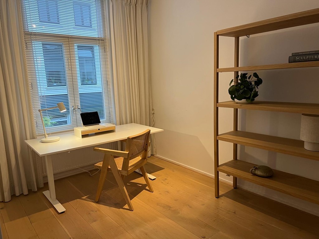 Aan de voorzijde bevindt zich een multifunctionele kamer van ca. 12 m², ideaal als studeer-, werk- of logeerkamer. De gehele verdieping is voorzien van een lichte eikenhouten vloer, wat bijdraagt aan een warme en huiselijke sfeer.