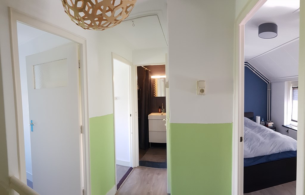 Via de overloop zijn de drie kamers en de badkamer toegankelijk. Van deze kamers is een ingericht als tweepersoons slaapvertrek, een als study en een als was/kleedruimte.