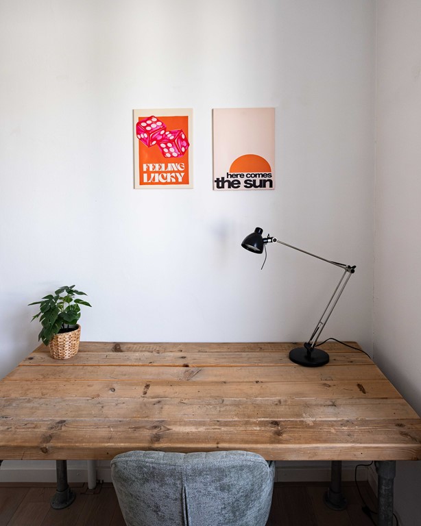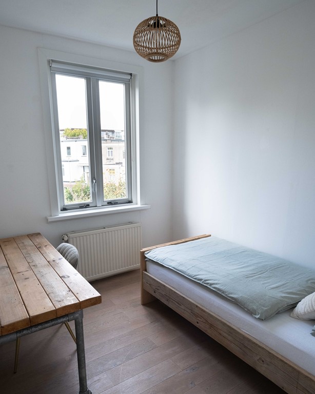 De tweede slaapkamer bevindt zich aan de zijkant, tegenover de badkamer en bevat een 1-persoonsbed. De derde slaapkamer bevindt zich aan de achterzijde. Ook hier staat een 1-persoonsbed en een groot bureau.