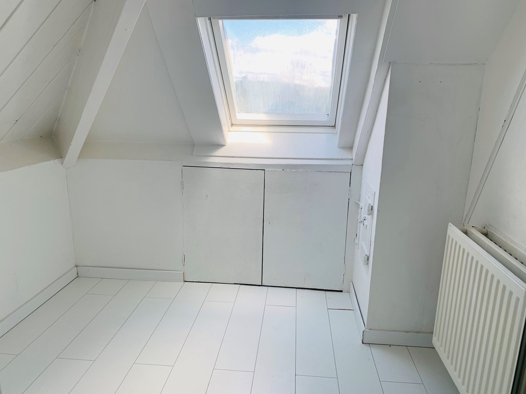 Overloop met wasmachine- droger- opstelling, twee ruime slaapkamers, 3e kleine kamer aanwezig welke eventueel kan worden gebruikt als opslagruimte of waskamer.