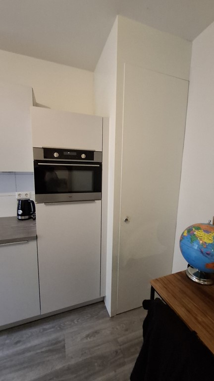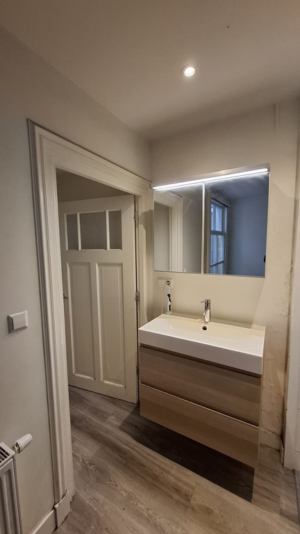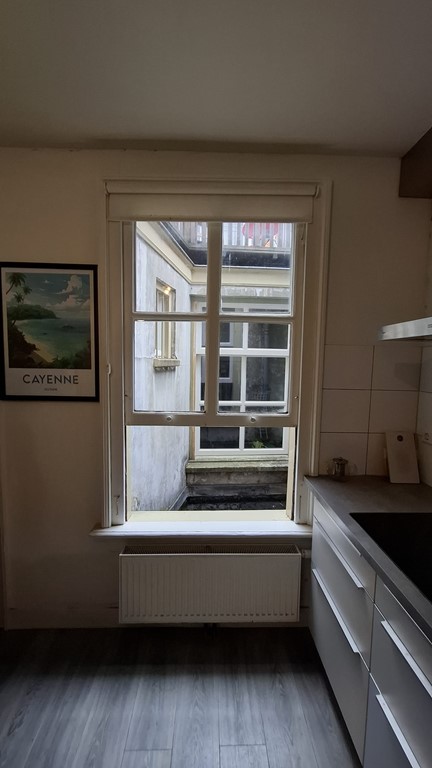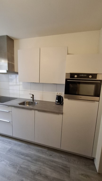 Via de centrale entree bereikt u het appartement op de eerste verdieping. De lichte woonkamer aan de voorzijde zorgt voor een prettige en open sfeer. De ruime woonkeuken is modern uitgerust met een vaatwasser, inductiekookplaat, afzuigkap, combimagnetron en een ruime koelkast.