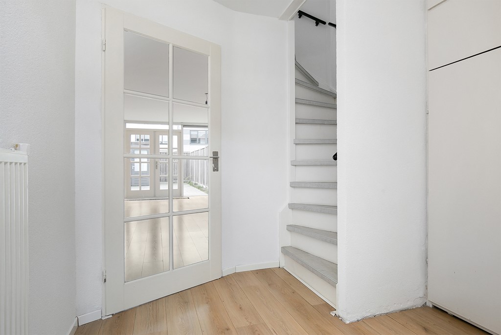 Bij binnenkomst valt direct de lichte en ruime woonkamer op, een fijne plek om te ontspannen of gezellig samen te zijn. Aan de voorzijde van de woning bevindt zich de praktische keuken, met prettig uitzicht op de straat.