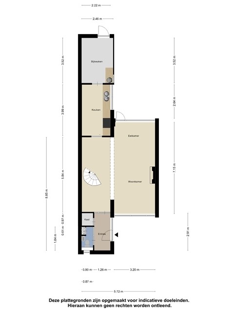 Begane grond: Entree met toilet. Vanuit de hal bereik je de ruime lichte woonkamer die voorzien is van plavuizen met vloerverwarming.