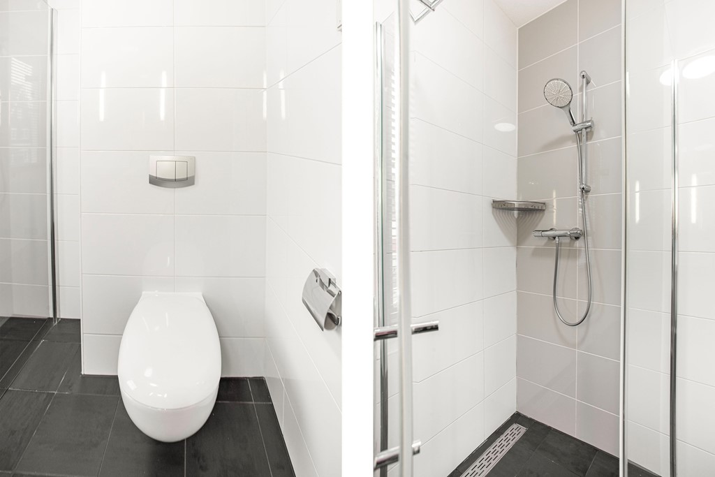 Drie lichte slaapkamers en een moderne badkamer met inloopdouche en tweede toilet. De ruime hoofdslaapkamer beschikt over een grote kast.