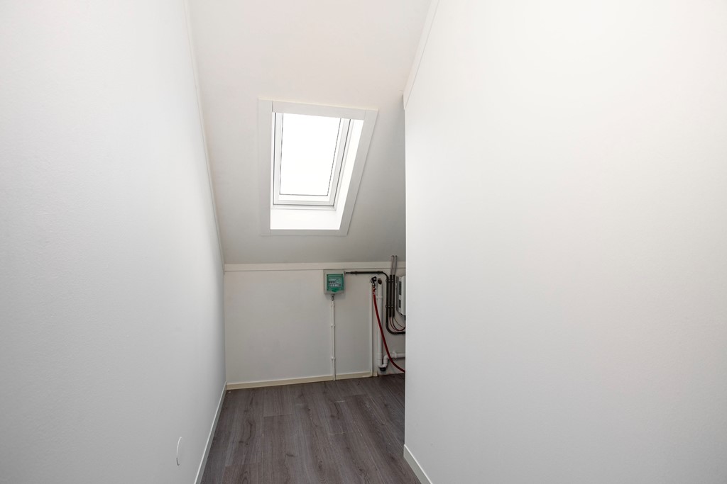 Vierde slaapkamer, aparte wasruimte waar ook de CV‑ketel staat, en een multifunctionele open ruimte met veel daglicht dankzij dakramen.