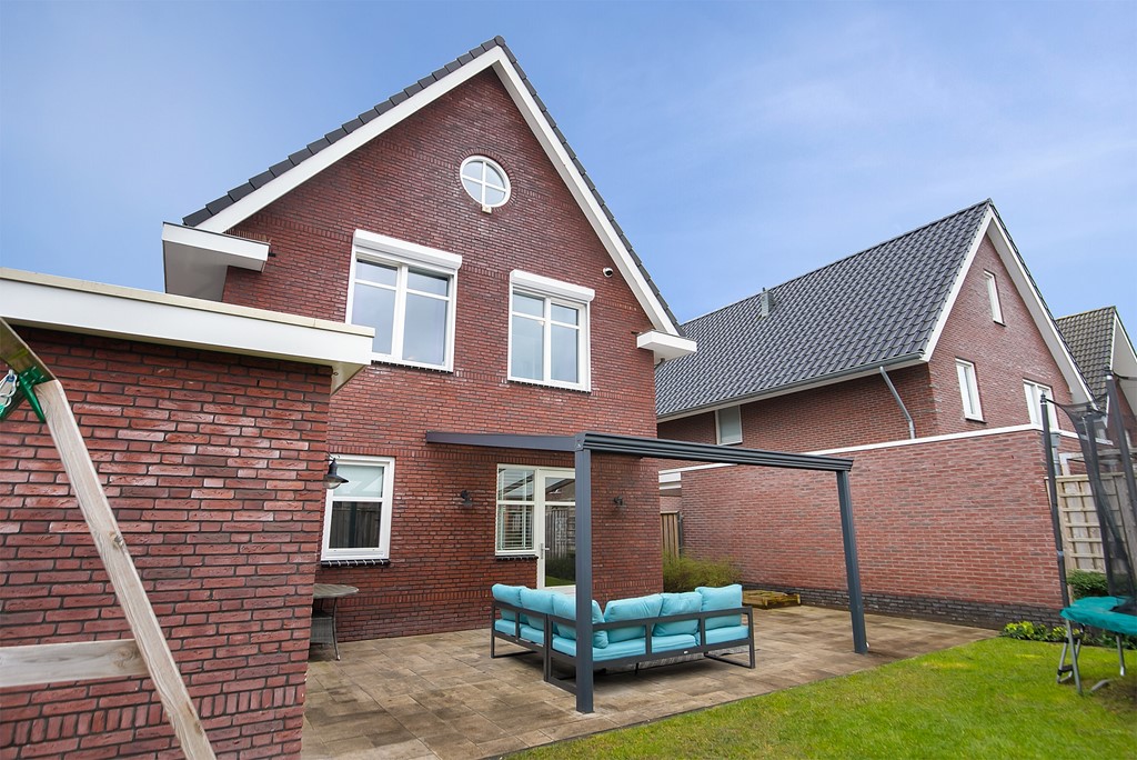 De lichte en royale woonkamer vormt samen met de open keuken een prachtige leefruimte. De keuken is modern, volledig uitgerust en ideaal voor kookliefhebbers. Via de openslaande deuren stap je de ruime achtertuin in, voorzien van een grote overkapping waar je het hele jaar door heerlijk kunt loungen. Vanuit de tuin is tevens de garage/schuur toegankelijk.