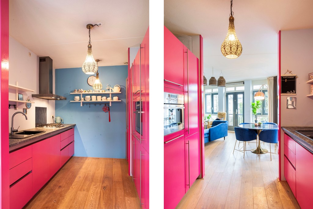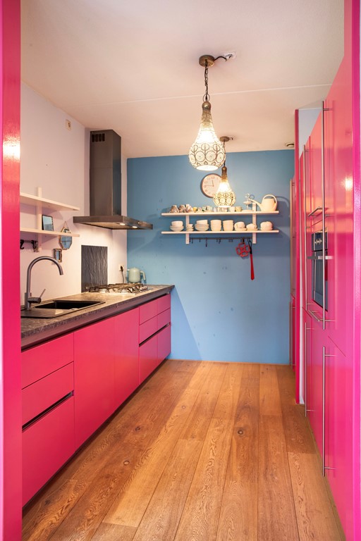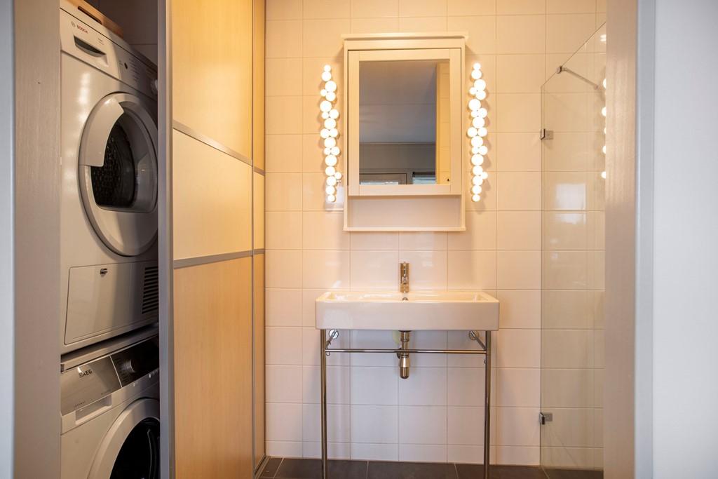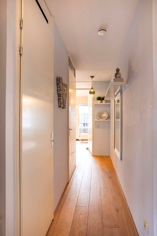 Het appartement beschikt over een prettige woonkamer met veel lichtinval en een ruime, open keuken. De keuken is van alle gemakken voorzien, waaronder een koel-/vriescombinatie, kookplaat, afzuigkap en vaatwasser.