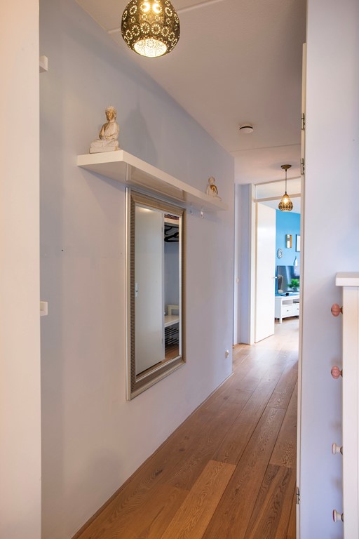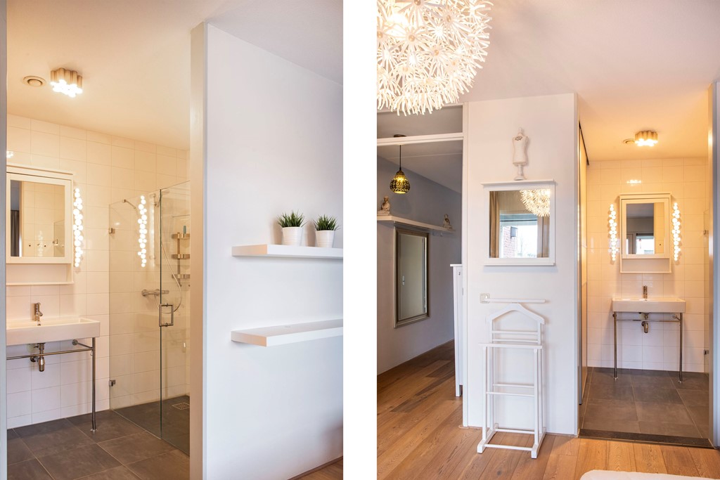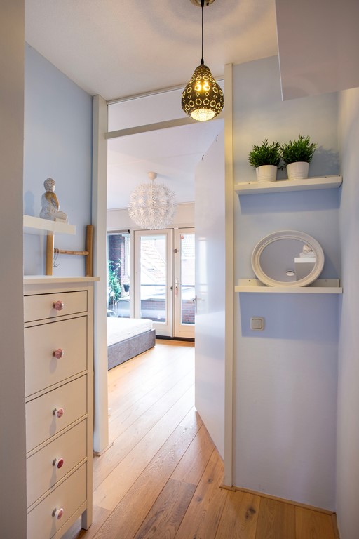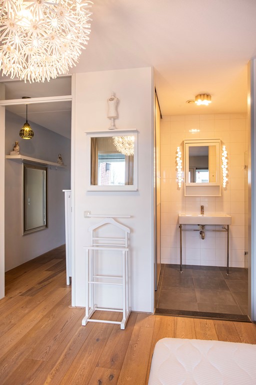 De woning beschikt daarnaast over een ruime slaapkamer met aangrenzende badkamer. In de badkamer bevinden zich inbouwkasten en de witgoedapparatuur. De royale douche is separaat afgescheiden. Vanuit de slaapkamer is er toegang tot een ruim balkon aan de achterzijde van het appartement.