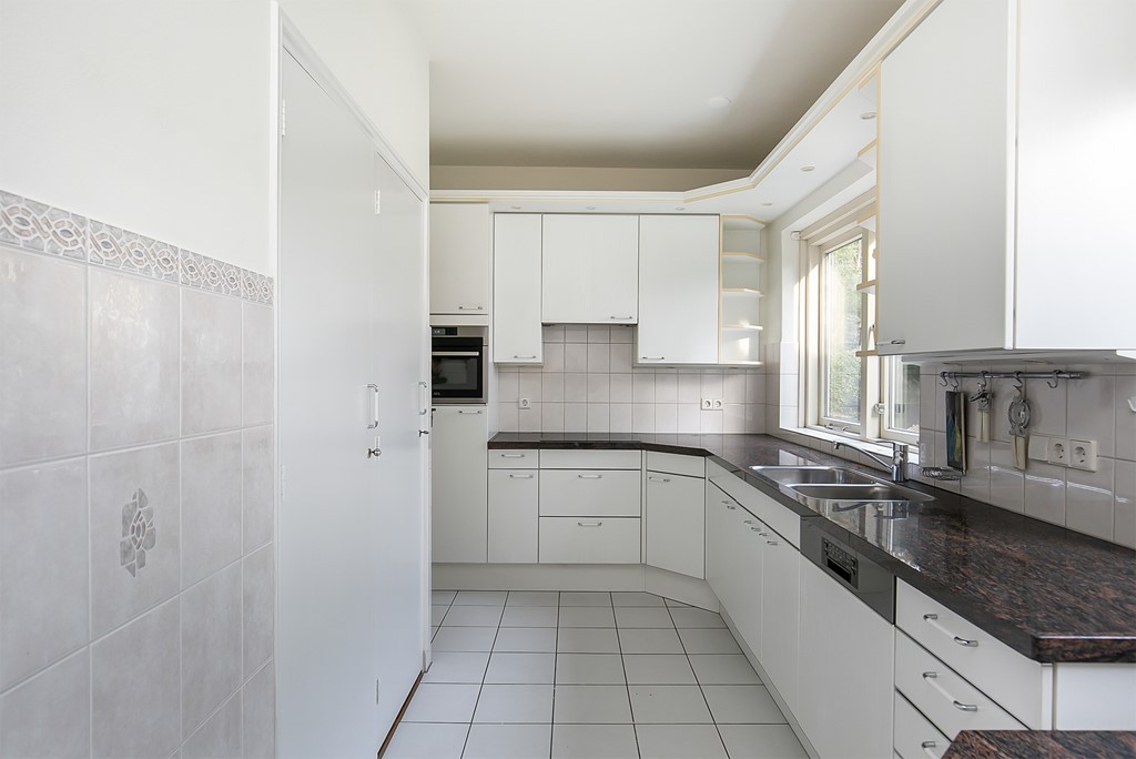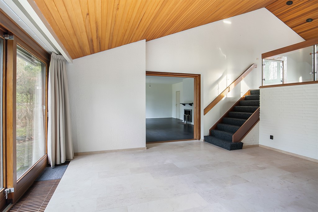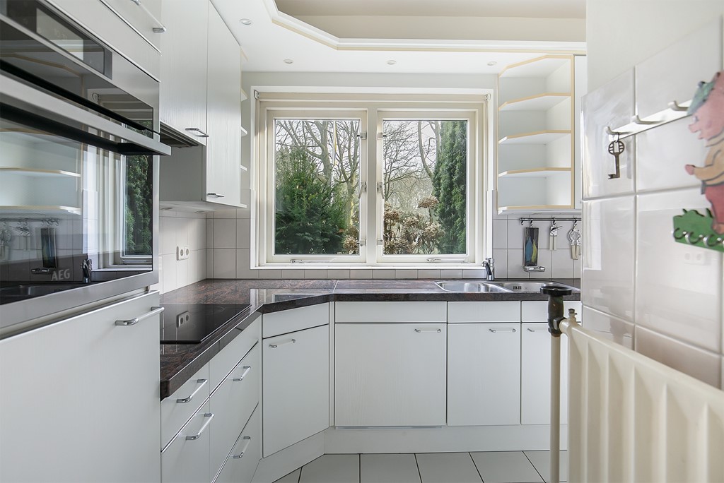 Entree met sfeervolle hal, gastentoilet en garderobe. Er zijn 3 grote woonruimtes, waarvan twee zijn voorzien van een mooie nieuwe laminaat vloer en een met hardstenen vloer. Door de speelse indeling met een vide is deze ruimte weliswaar zeer ruim maar blijft intiem. De woonkamer is voorzien van twee open haarden. Via de schuifpui bereikt u het zonneterras en de zeer grote, diepe achtertuin. De keuken is voorzien van alle apparatuur welke grotendeels is vernieuwd.