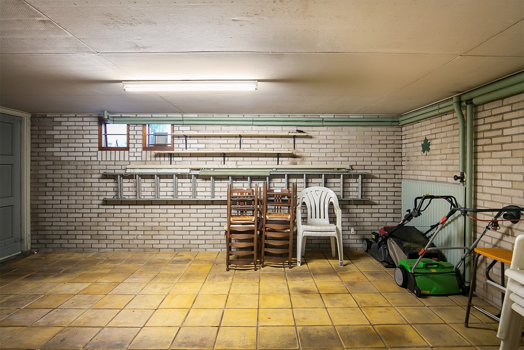 Er is een inpandige doorloop naar de garage en de stook- en provisiekelder.