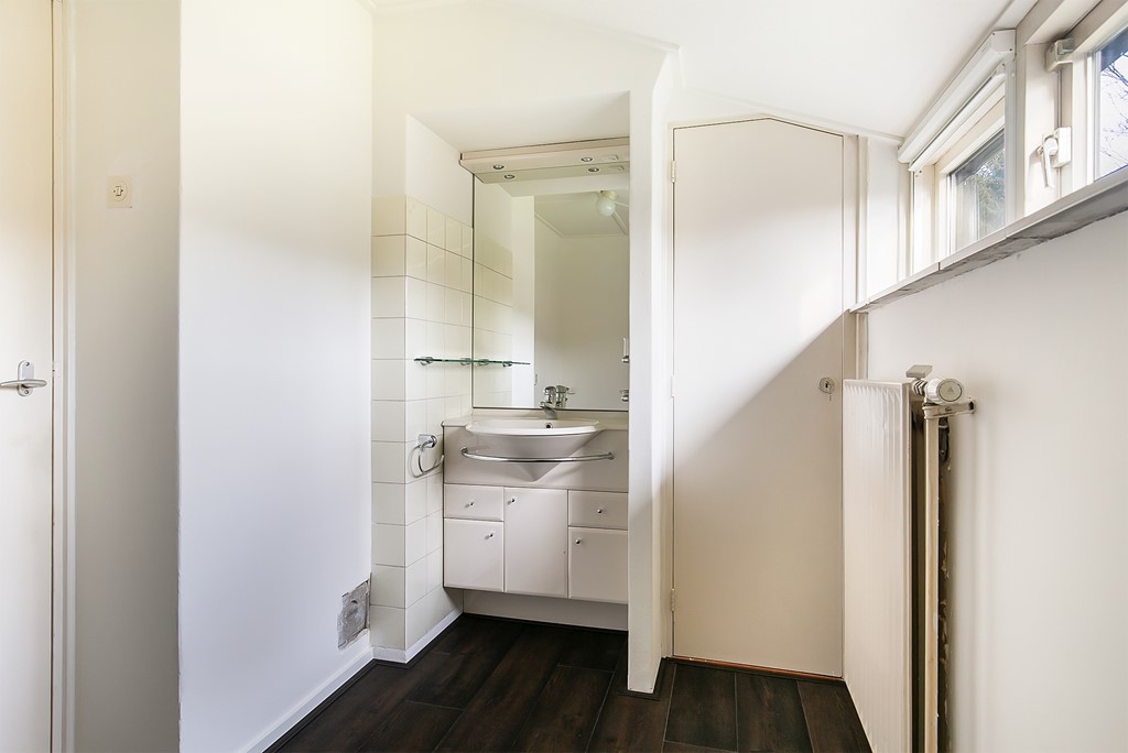 De trap leidt naar de ruime en lichte overloop met drie kamers, een masterbedroom met balkon, een ruime slaapkamer en een kleinere kamer die ook uitstekend dienst doet als home office, allen zijn voorzien van een wastafel. Moderne badkamer en een nieuw modern toilet. De badkamer beschikt o.a. over een fraai ligbad, douche, wastafelmeubel en handdoekradiator. Een separaat toilet is op de overloop gesitueerd.