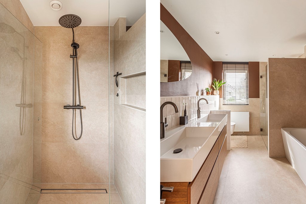 Op de eerste verdieping bevinden zich drie royale slaapkamers. De recent gerenoveerde badkamer straalt luxe en comfort uit en is compleet uitgerust met een ligbad, een ruime inloopdouche, een separaat toilet en een dubbele wastafel met stijlvol meubel.