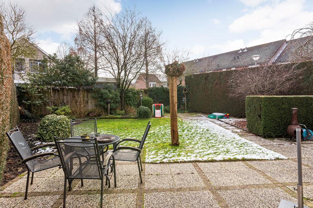 Ook buiten is het heerlijk vertoeven. De riante achtertuin biedt volop ruimte om te ontspannen en te genieten van rust en privacy. De woning ligt aan een doodlopende weg, waardoor er nagenoeg geen verkeer is. In de directe nabijheid bevindt zich bovendien een kinderspeeltuintje – een fijne toevoeging voor gezinnen.
