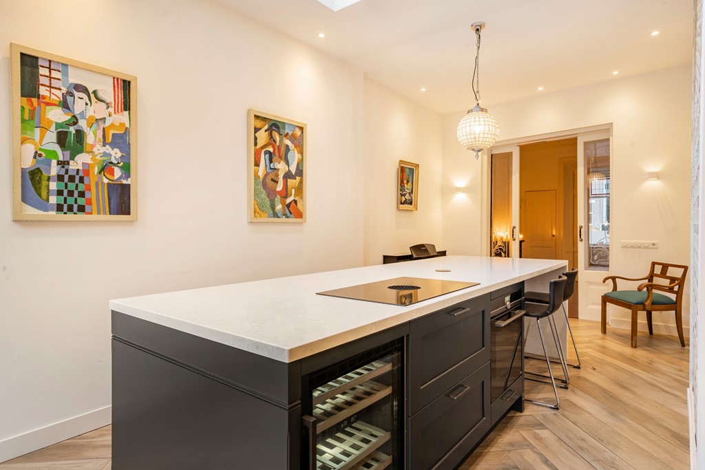 - Zeer royale keuken met kookeiland, bar, Bora inductie, Quooker, stoomoven, reguliere oven, koffiemachine en gekoelde wijnkast