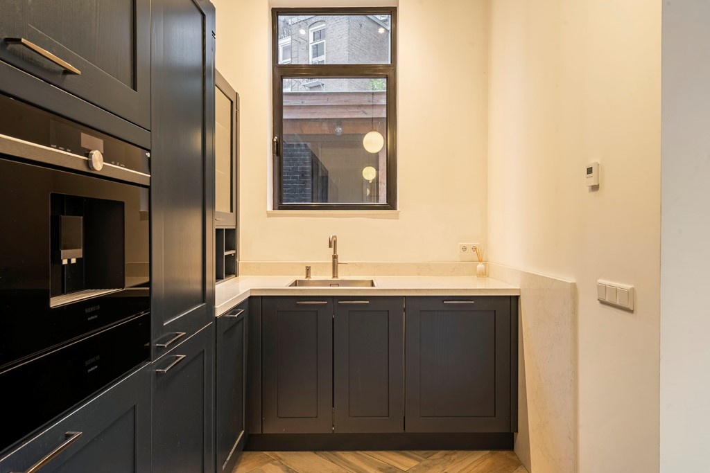 De keuken is uitgerust met zeer hoogwaardige apparatuur, waaronder een Bora-inductiekookplaat met geïntegreerde downdraft, een geklimatiseerde wijnkast, twee Siemens Slimline combi-ovens met WiFi-bediening, een Siemens Slimline koffiemachine, een Quooker, een vaatwasser en zelfs een bordenwarmer. Alles is met oog voor detail ontworpen en afgewerkt — inclusief vloerverwarming en een groot dakraam met op afstand bedienbare zonwering.