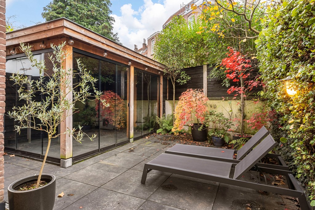 - Veranda met glazen schuifpanelen en besloten stadstuin