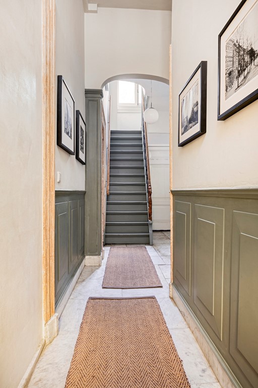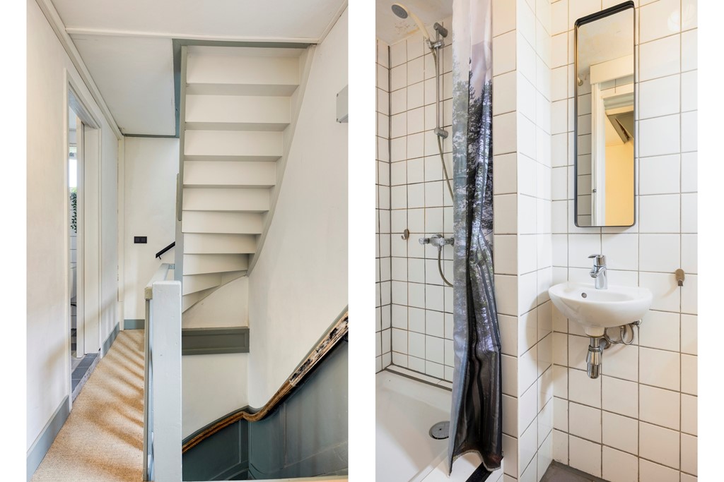 Via de fraaie entree met authentieke trapopgang betreedt u de woning, die zich uitstrekt over drie verdiepingen op de tweede, derde en vierde etage. Elke verdieping beschikt over een eigen woonkamer, slaapkamer en eenvoudige keuken, waardoor het pand zich uitstekend leent voor verschillende woonvormen – denk aan werken aan huis, verhuur, of een royale stadswoning met meerdere leeflagen. De aanwezige badkamer is eenvoudig uitgevoerd en voorzien van een douche en toilet.