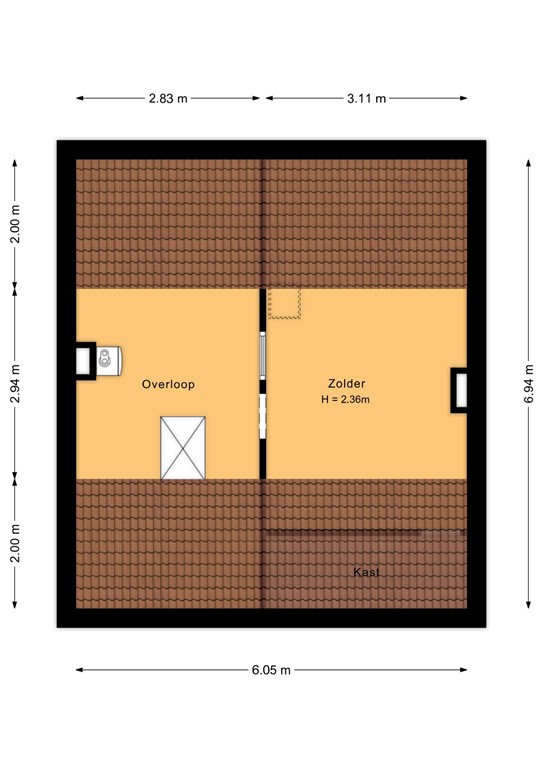 Daarnaast beschikt de woning over een zolderverdieping. Momenteel is deze bereikbaar via een luik, maar met het plaatsen van een vaste trap en eventueel een dakkapel kan hier eenvoudig een ruime vierde slaapkamer, werkruimte of hobbykamer worden gerealiseerd.