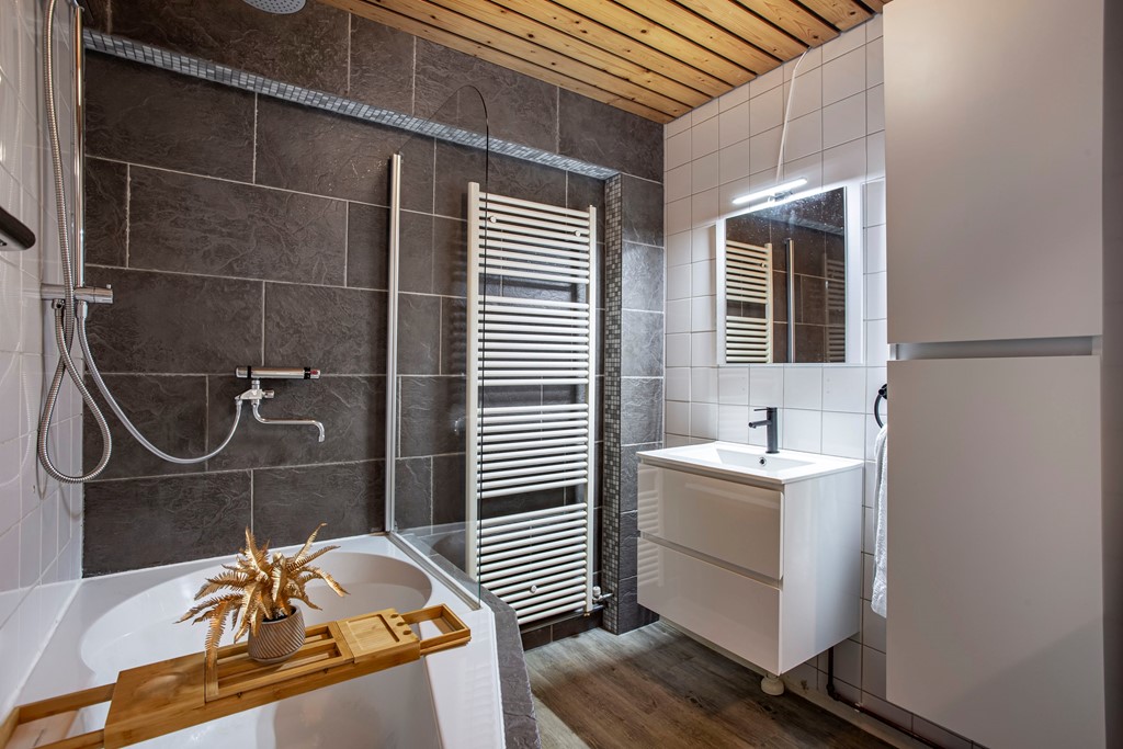 Op de eerste verdieping vind je drie verzorgde slaapkamers en een nette badkamer, uitgerust met een ligbad met douchegelegenheid, een vernieuwd wastafelmeubel en ruimte voor wasmachine en droger. Extra fijn is de ruime inloopkast op deze verdieping. Voor comfort en privacy zijn alle ramen op de eerste verdieping voorzien van rolluiken.