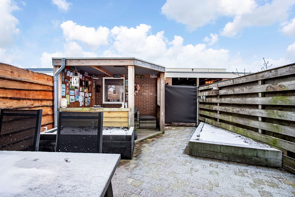 De achtertuin is recent deels opnieuw aangelegd en biedt veel mogelijkheden om van buiten te genieten. Er ligt nieuwe bestrating, er is een sfeervolle border aangelegd en achterin staat een nieuwe veranda: een heerlijke plek om het hele jaar door te ontspannen. De stenen berging biedt praktische opbergruimte, waarbij de elektra van zowel de berging als de veranda onlangs volledig is vernieuwd.