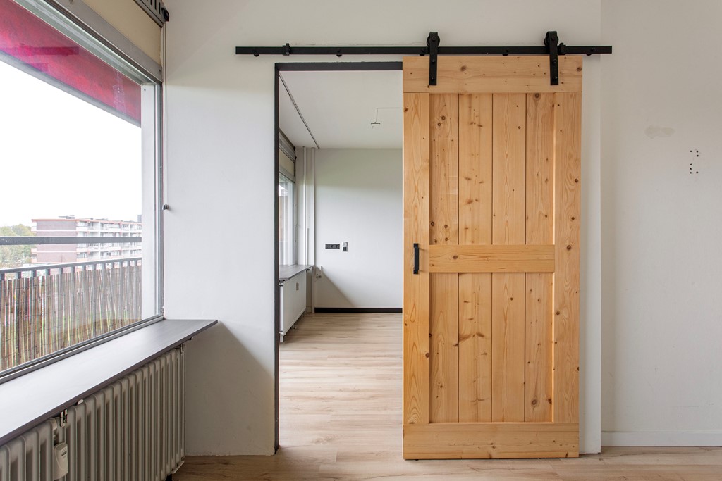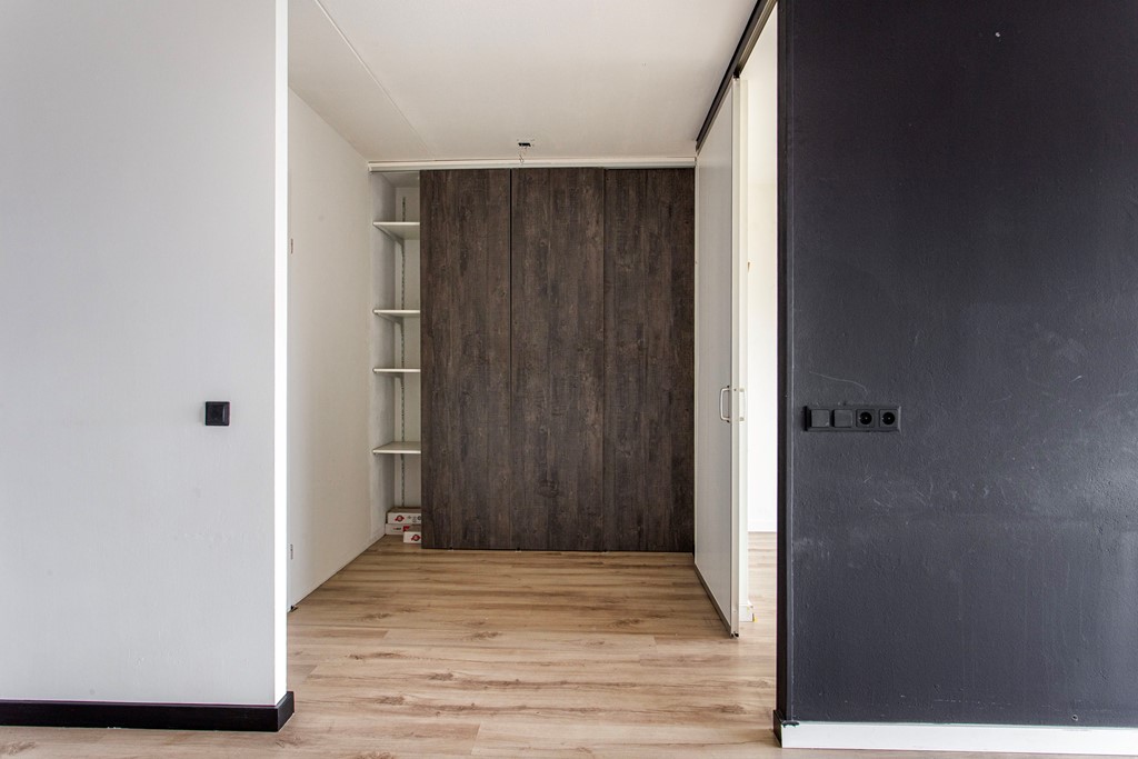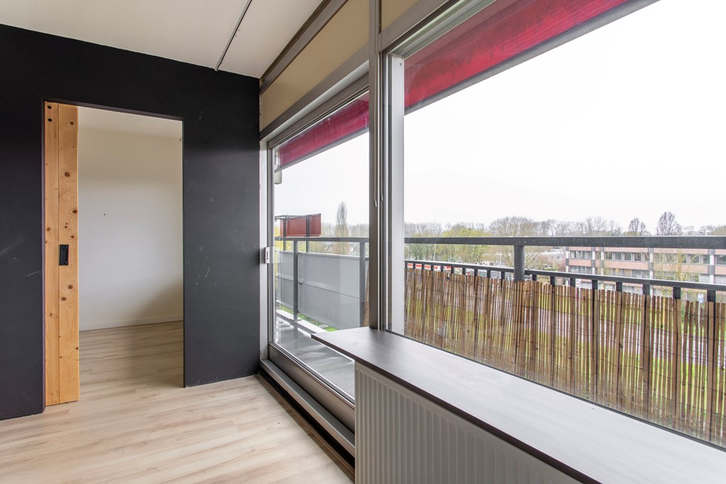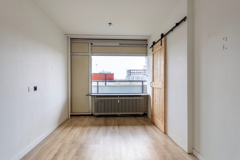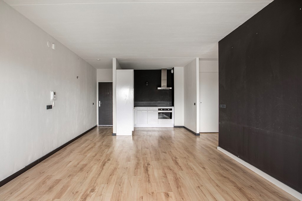 Appartement: entree/hal naar de ruime woonkamer met moderne, open keuken. Er is sprake van een afgescheiden slaapkamer. Vanuit de woonkamer heb je de toegang tot het ruime balkon, wat zich over de gehele breedte van het appartement uitstrekt. De moderne badkamer is voorzien van toilet, wastafel en douchecabine en heeft tevens een aansluiting voor de wasmachine. De slaapkamer is volledig afgescheiden en is voorzien van een houten schuifdeur, zodat privacy gewaarborgd is.