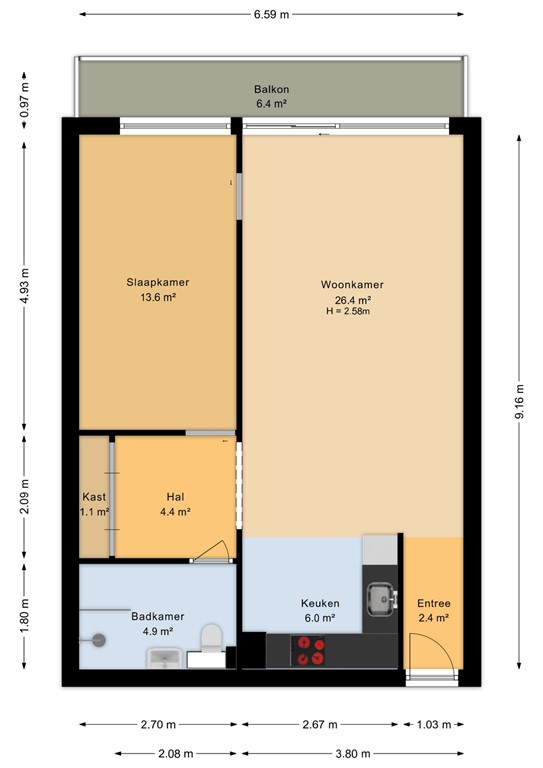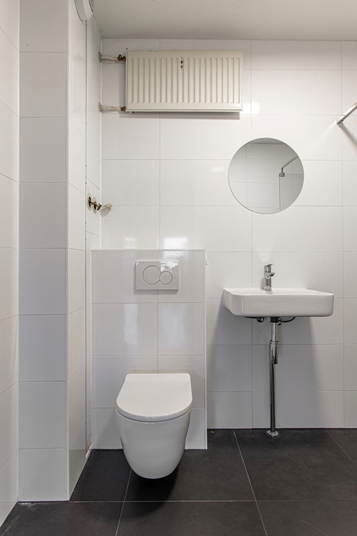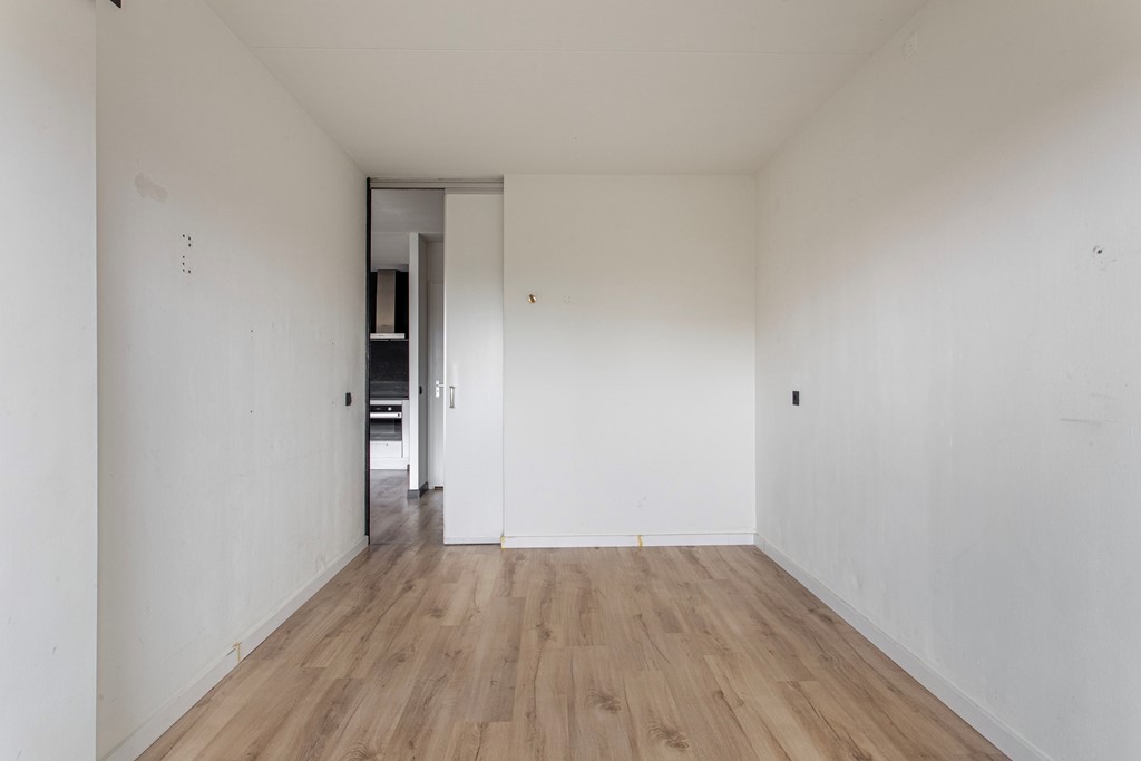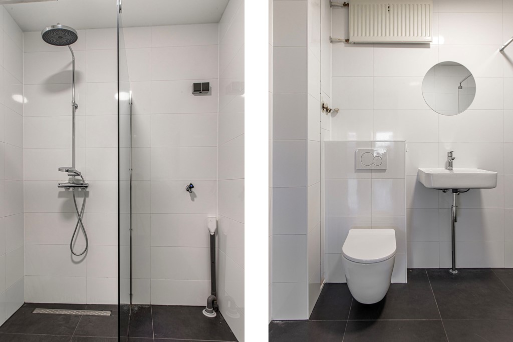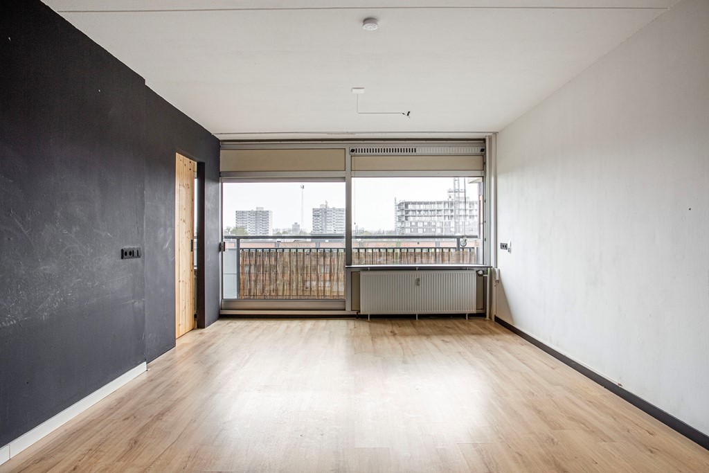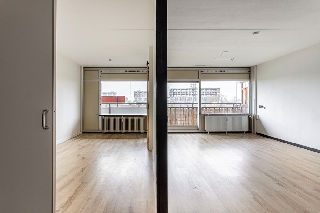 Appartement: entree/hal naar de ruime woonkamer met moderne, open keuken. Er is sprake van een afgescheiden slaapkamer. Vanuit de woonkamer heb je de toegang tot het ruime balkon, wat zich over de gehele breedte van het appartement uitstrekt. De moderne badkamer is voorzien van toilet, wastafel en douchecabine en heeft tevens een aansluiting voor de wasmachine. De slaapkamer is volledig afgescheiden en is voorzien van een houten schuifdeur, zodat privacy gewaarborgd is.