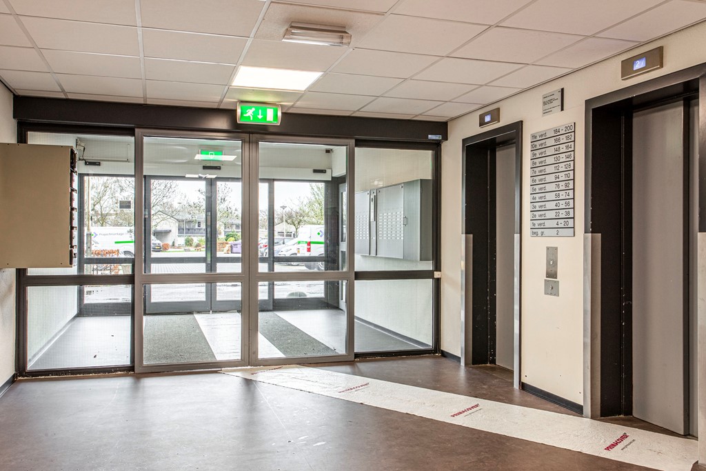 Begane grond: centrale hal met brievenbussen, toegang tot de bergingen en de liften en voorzien van een video-/intercominstallatie.